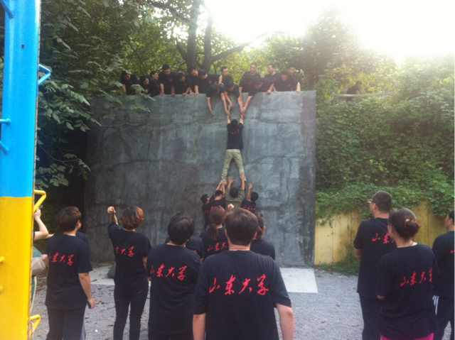 近日,公司康總參加山東大學(xué)MAB總裁班第二季的學(xué)習(xí),并在微信上分享了部分學(xué)習(xí)內(nèi)容?悼倢ν卣褂(xùn)練感悟很深,方法,合作,團(tuán)隊(duì)配合,信任,感恩,都融在里面,最后的畢業(yè)墻異常艱難,46個(gè)人不借任何外力,全部爬上4米多的水泥墻,有女士,也有近60歲的老先生,腳、手、脖子磨破了,沒有一個(gè)人叫苦!17分鐘讓團(tuán)隊(duì)成員淚流滿面!并表示找個(gè)合適的機(jī)會也帶自己的團(tuán)隊(duì)來體驗(yàn)一次,讓大家真正感悟什么是合作?什么是團(tuán)隊(duì)的力量!